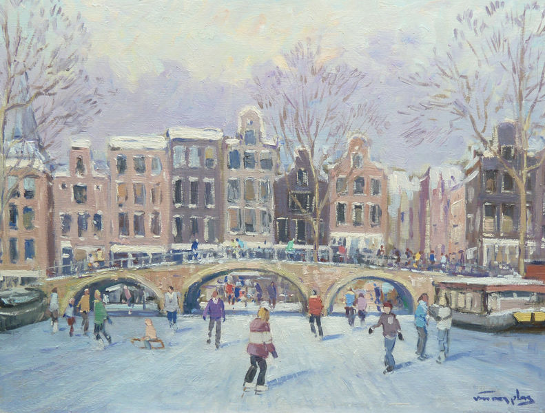 Niek van der Plas (1954) grew up in Katwijk aan Zee, as oldest son in a family of four children. The old, white church, the sea and the dunes are famous places in the fisherman village. You can see them on much of the work from the painter. Niek already started on young age with signs, stimulated by his father. In 1966 he was proposed as a student to the Famous Artist school in the United States. Van der Plas is a colorist. Preferably he works with warm colours. His paintings have a French environment. They where appreciated by a big public in many countries.